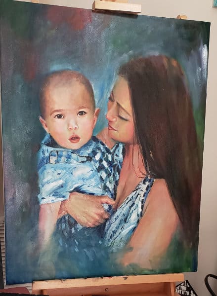 Although she never had formal training, she studied portraiture with a local portrait artist, Jon Greely, where she learned to work with forms, lights and shadows. Subsequently, she went to study with Charles Miano at the Southern Atelier in an informal studio setting, and then with Romel de la Torre and Kevin Beilfuss.